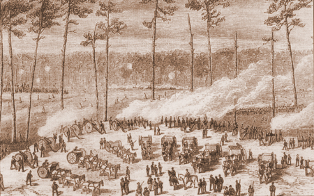Battle of Bentonville — Union artillery in action on the Morris Farm, late afternoon, March 19, 1865